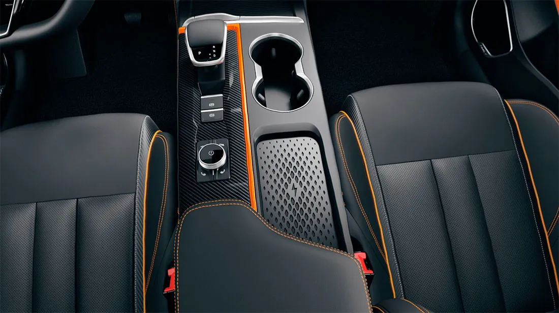 - Декоративная отделка: черная обивка сидений и элементов интерьера, серебристые и вставки \"под карбон\"